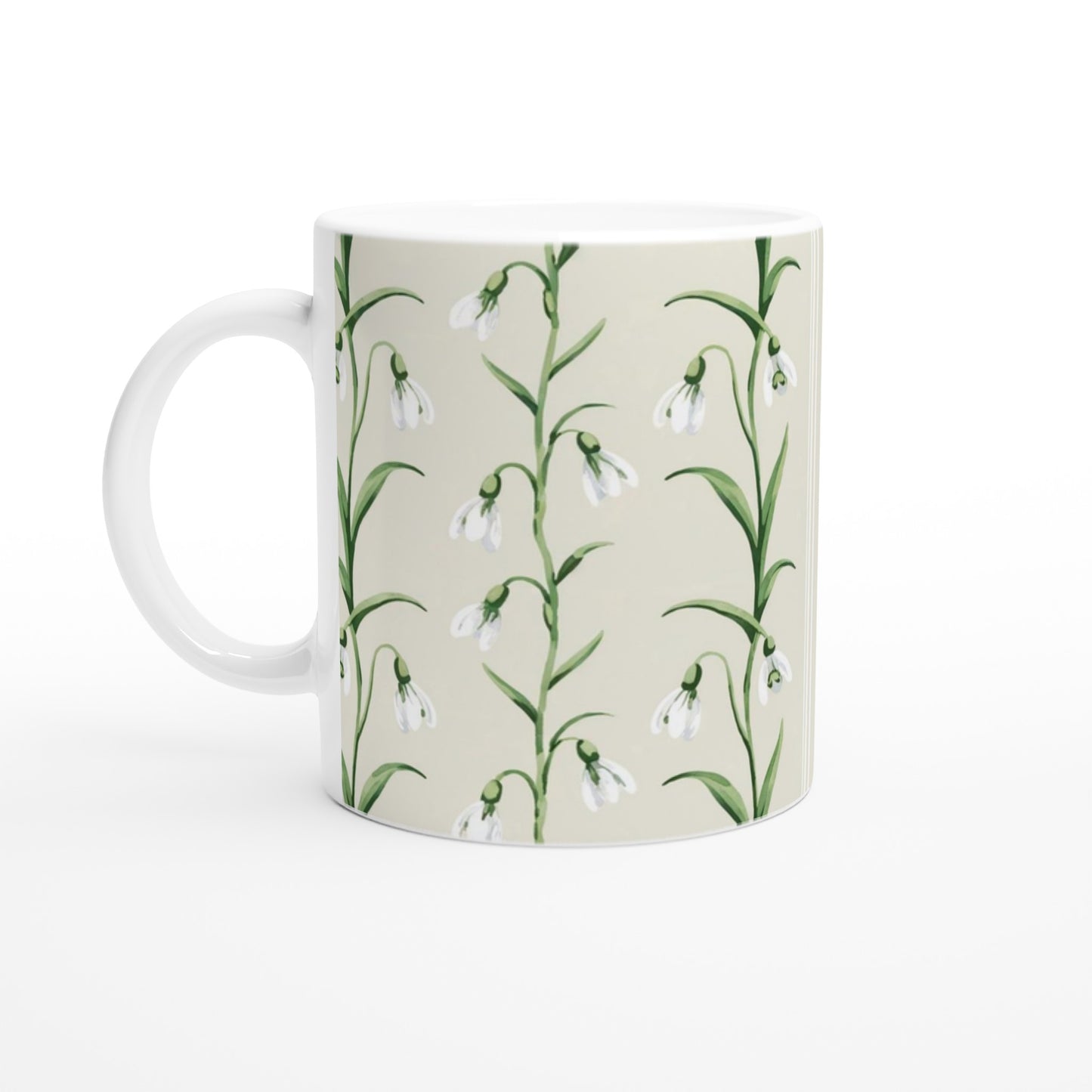 Snow Drops Ceramic Mug - White Floral Coffee Cup